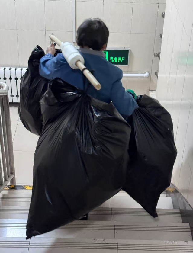 沉甸甸的垃圾袋与她单薄的背影形成鲜明对比,让我们直观感受到基层劳动者的不易,也唤起了对身边平凡善意的感恩与敬意。
