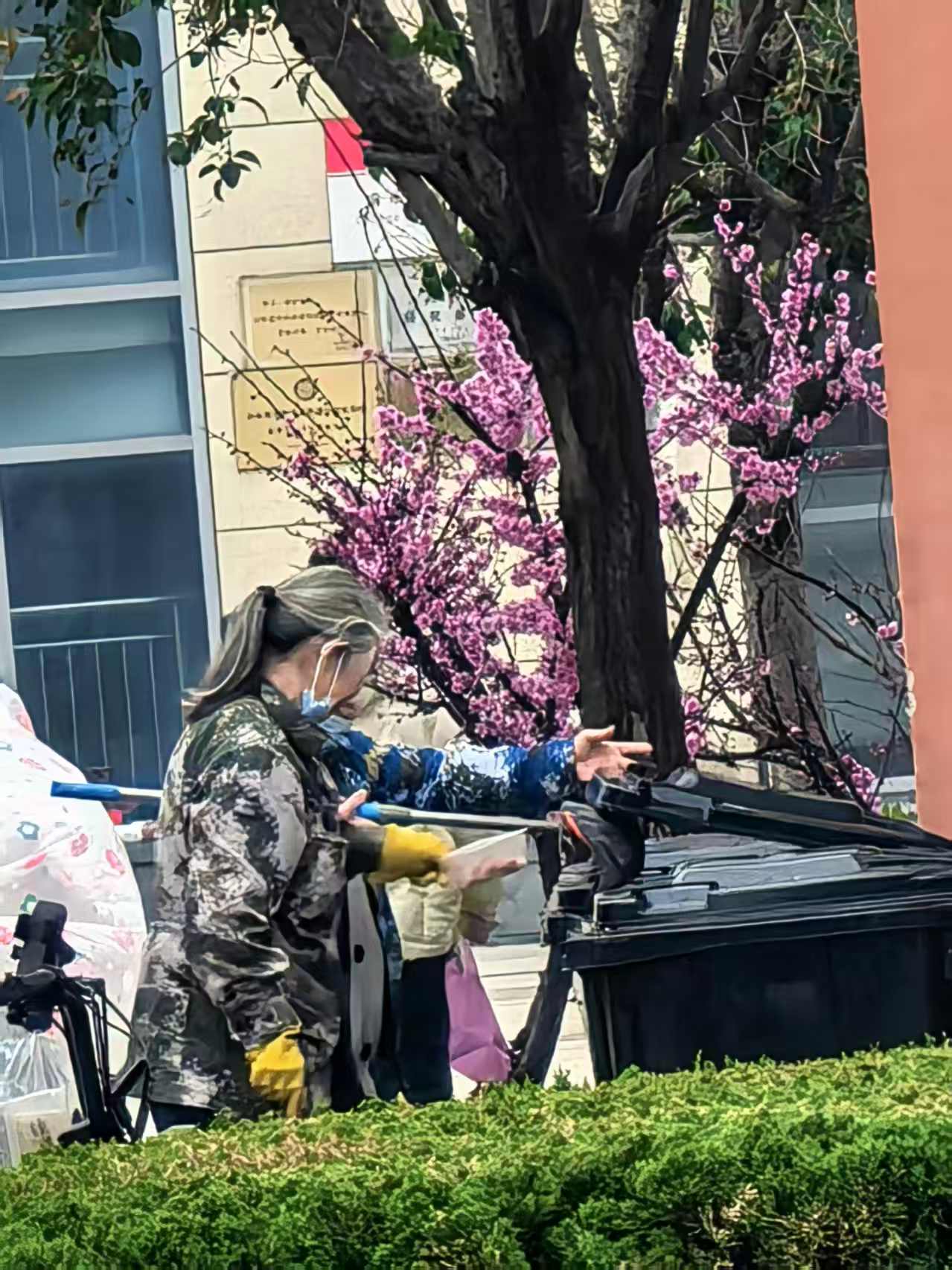 无论晴雨,清洁阿姨总会准时出现在垃圾桶旁,耐心清理着满溢的垃圾,细致冲洗着桶边的污垢。没有耀眼的光环,却在最脏最累的岗位上,用坚持与担当守护着校园的卫生。