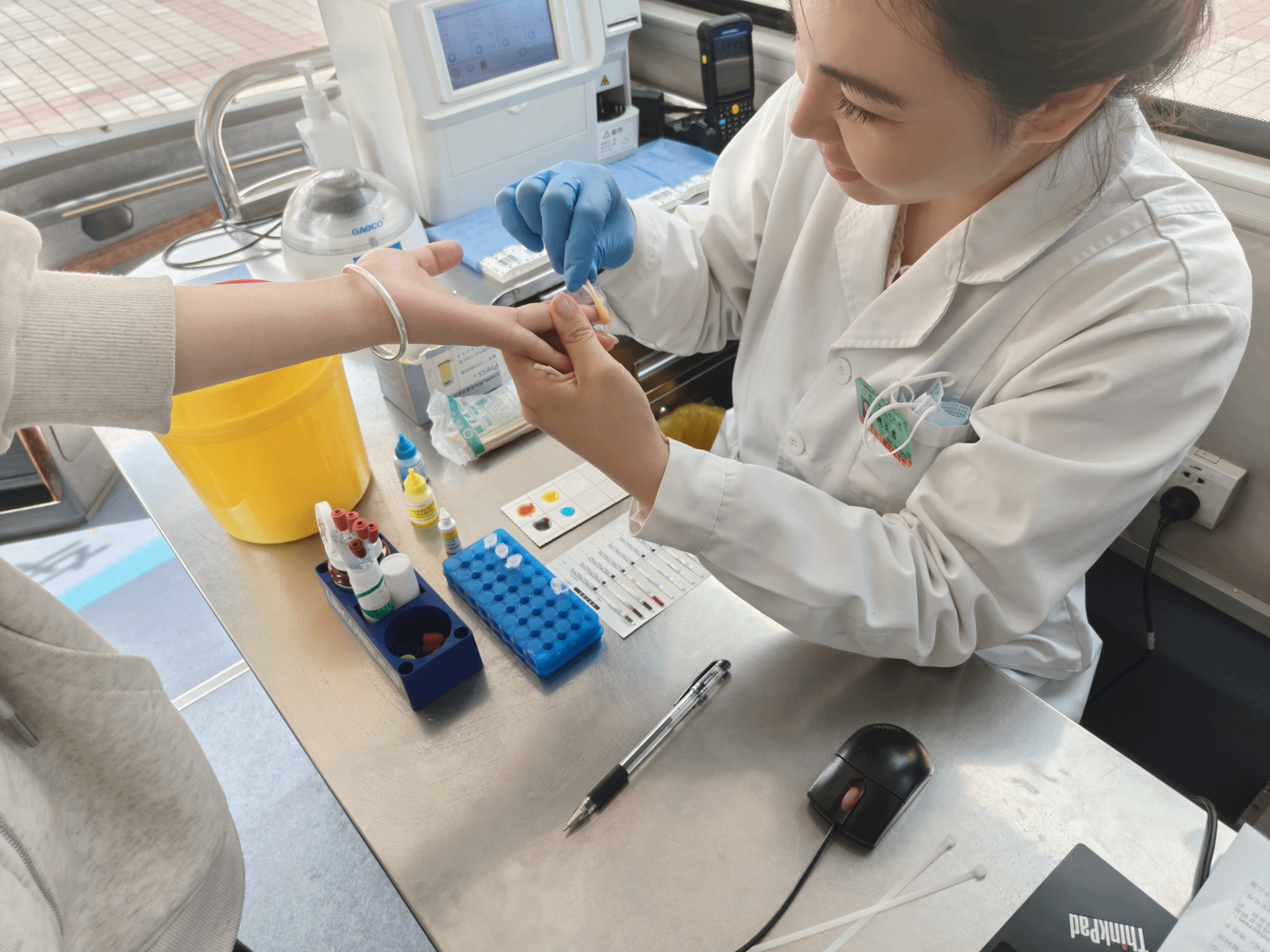 活动现场,志愿者引导同学们有序完成信息登记与表格填写。医护人员依次为每位同学测量血压,详细询问近期身体状况及既往病史,并开展血液初筛,确保献血者符合献血条件。抽血前,医护人员耐心询问同学们饮食、睡眠情况,对神情紧张的同学进行温和安抚;抽血过程中,医护人员一边与同学交流分散其注意力,一边以专业手法完成消毒、进针等操作,最大限度减轻疼痛感,同时时刻观察献血者面色,及时询问是否有头晕等不适。献血结束后,医护人员规范为献血者止血、包扎,并仔细叮嘱后续注意事项:需按压针眼5-10分钟,当日避免剧烈运动,多喝水、多休息,针眼处24小时内不沾水。最后,志愿者为每位献血者发放献血证与暖心小礼物。