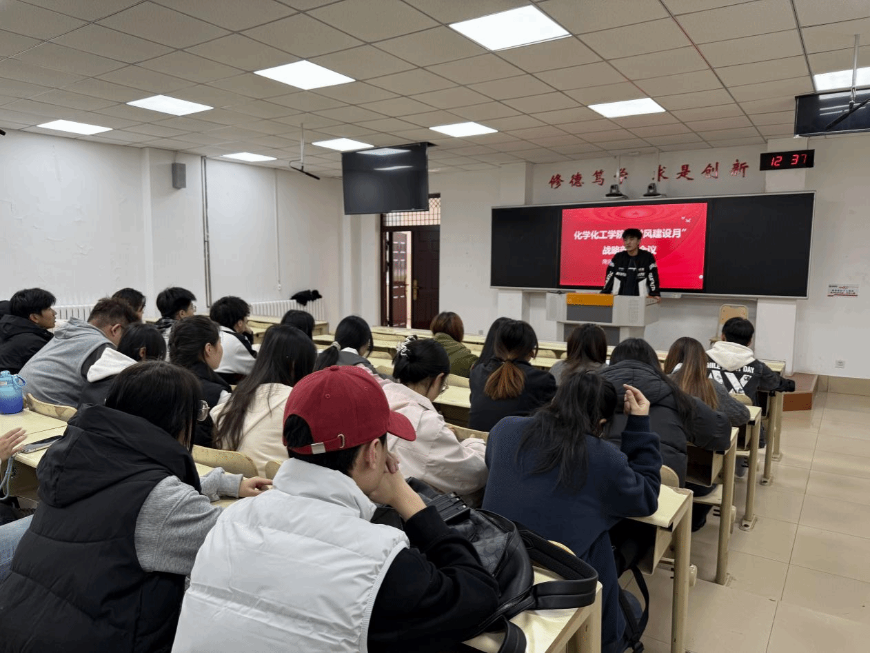 为深入贯彻落实学校关于加强学风建设的要求,推动学风建设提质增效,并进一步强化学风建设,营造修德、笃学、求是、创新的学习氛围,提升学生学业水平和综合素质。11月5日,化学化工学院于9号楼114教室举办“学风建设月”部署会议。学生会主席莫小为主持此次会议。