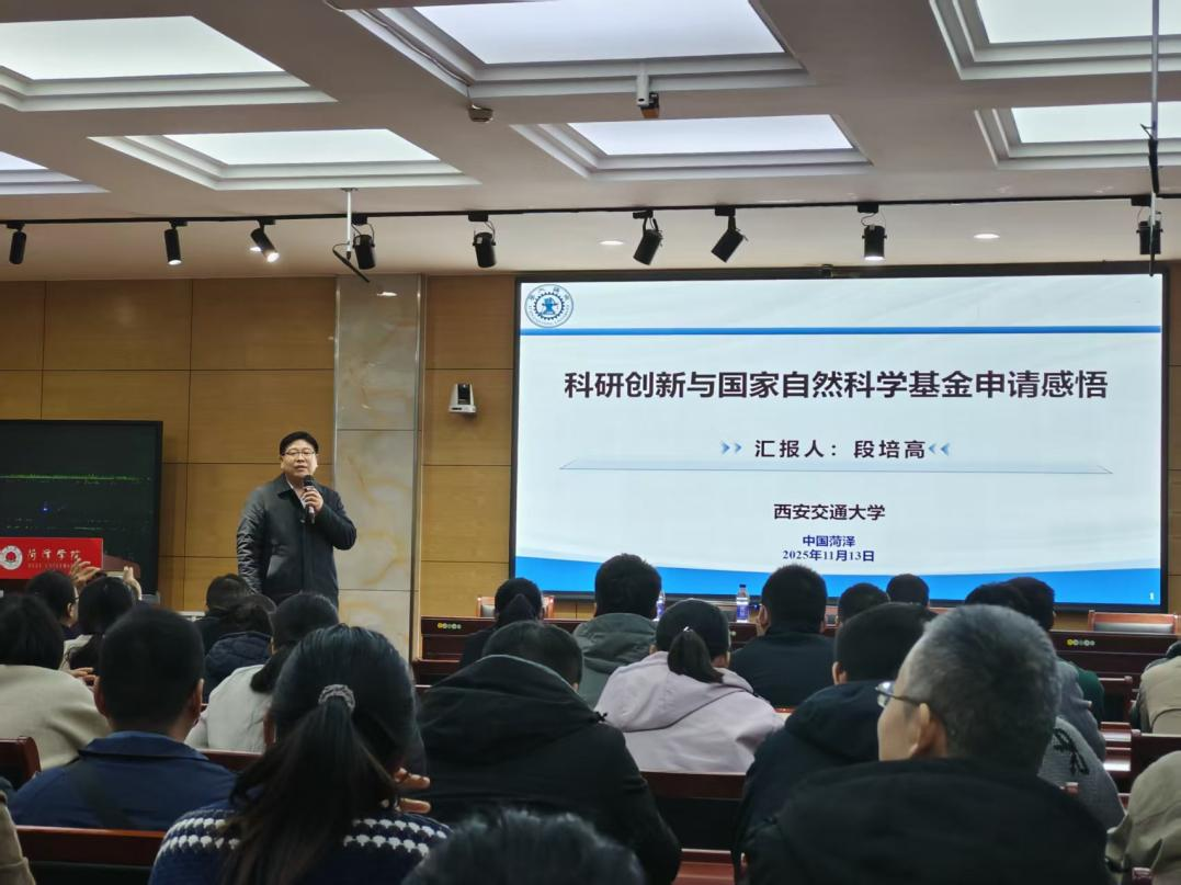 11月13日,由菏泽学院科研处、菏泽学院化学化工学院主办的“科研创新与国家自然科学基金申请感悟”专题学术讲座在老图书馆108报告厅成功举办。特邀西安交通大学段培高教授担任主讲人。