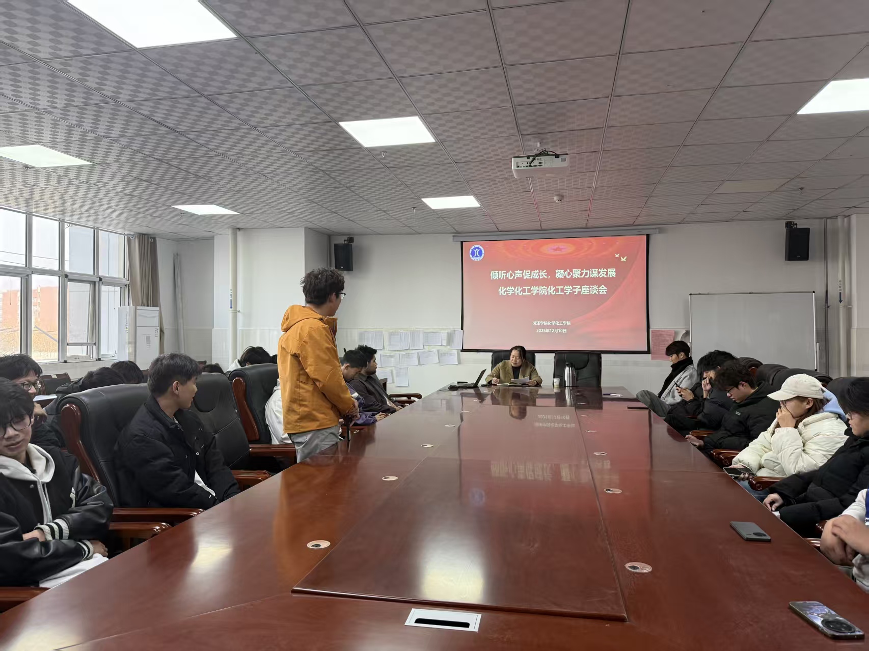 为倾听学生心声,全面把握学生的学业发展,进一步畅通师生沟通渠道。12月10日,化学化工学院在E224会议室召开以“倾听心声促成长,凝心聚力谋发展”为主题的化工学子座谈会,党委书记王化荣主持会议,2025级化工学子参加此次会议。