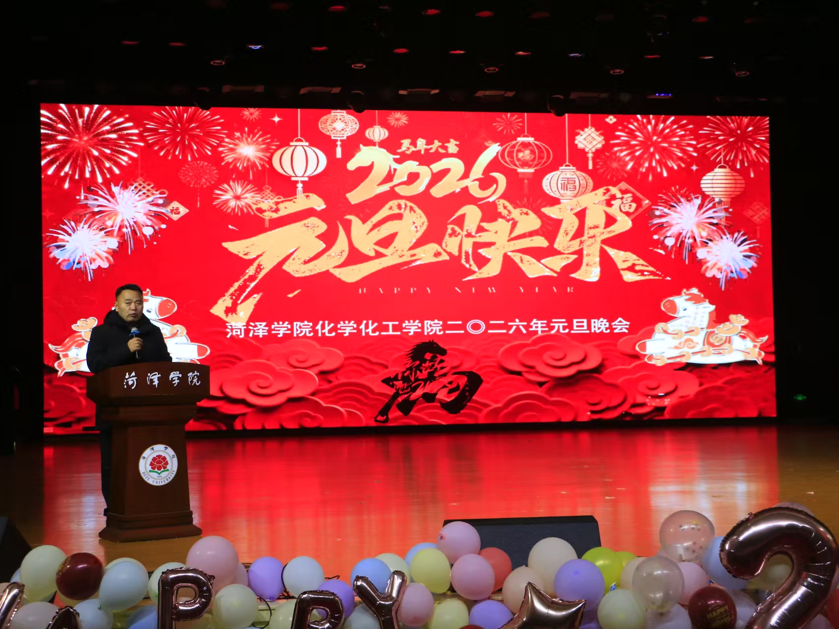 灵蛇辞旧年,骏马迎新春。2025年12月29日,化学化工学院在艺术演播中心举办2026年元旦晚会。菏泽学院学生工作处副处长张义听,化学化工学院院长李风海,党委副书记李建芳,副院长林枫、卢胜杰,化学化工学院教师及辅导员携化院学子共同参加此次晚会。