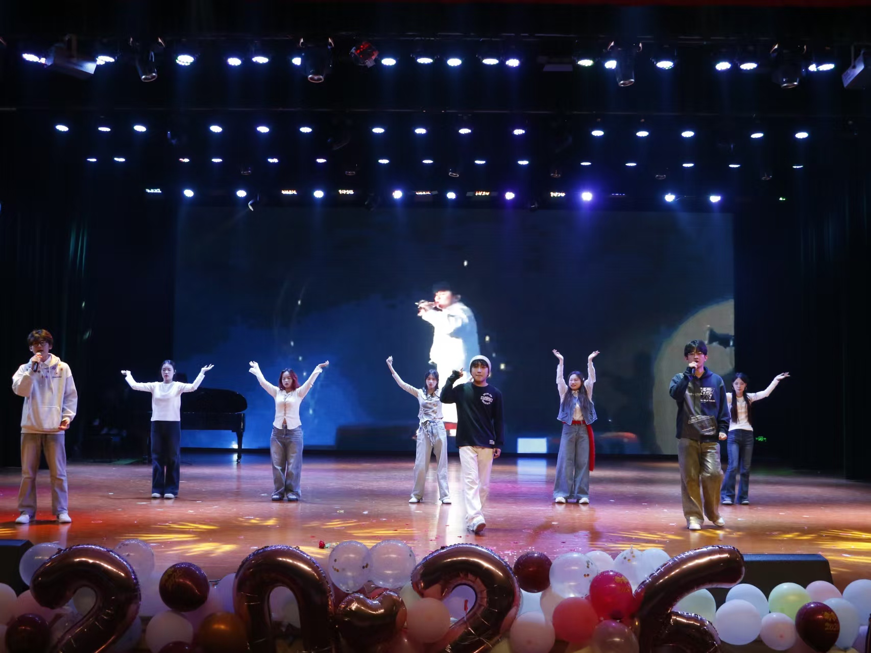 爆笑过后热血再燃,舞蹈串烧惊艳登场,明快旋律搭配利落舞步,国风与流行碰撞、柔美与飒爽切换,每一个片段都亮点十足,学子们尽情挥洒青春朝气,台下观众跟着节拍欢呼应援,将活动氛围推向顶峰。