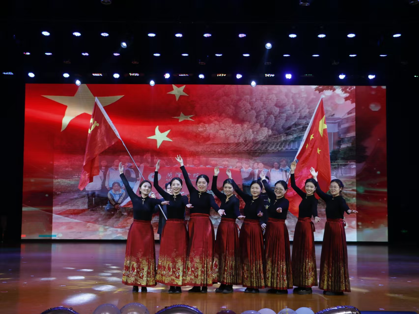 激昂过后,温情流淌。熟悉的旋律响起,教师代表带来的舞蹈 《我和我的祖国》惊艳亮相,舞步轻盈舒展,身姿温婉铿锵,眉眼间满是赤诚深情,瞬间点燃全场家国情怀,掌声久久不息。