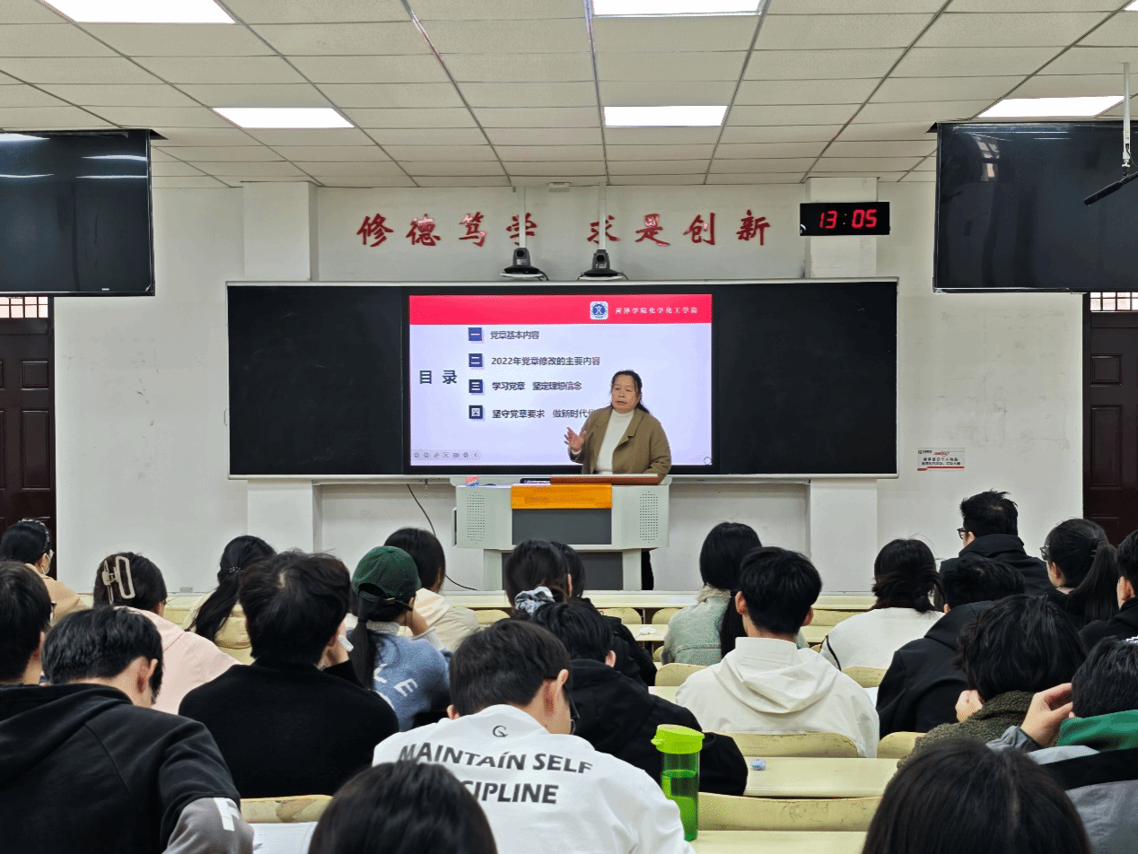 培训伊始,王化荣对全体党员发展对象提出殷切期望与严格要求,强调要始终将政治标准摆在首位,在思想和行动上积极向党组织靠拢,以实际行动践行初心使命,为早日成为一名合格的共产党员不懈努力。随后,她围绕党章学习与理想信念教育,重点从三个方面展开讲解:一是解读党章核心要义,明晰党的性质、宗旨与奋斗目标,把握马克思主义中国化时代化最新成果;二是结合实例说明如何以党章为指引,树立正确 “三观”,将个人理想融入民族复兴;三是指导党员发展对象在学习、服务中践行党章精神,提升党性修养。最后,她号召全体学员深入学习贯彻党的二十大精神,将个人成长与国家发展紧密结合,锤炼过硬本领,争做有理想、敢担当、能吃苦、肯奋斗的新时代优秀青年。