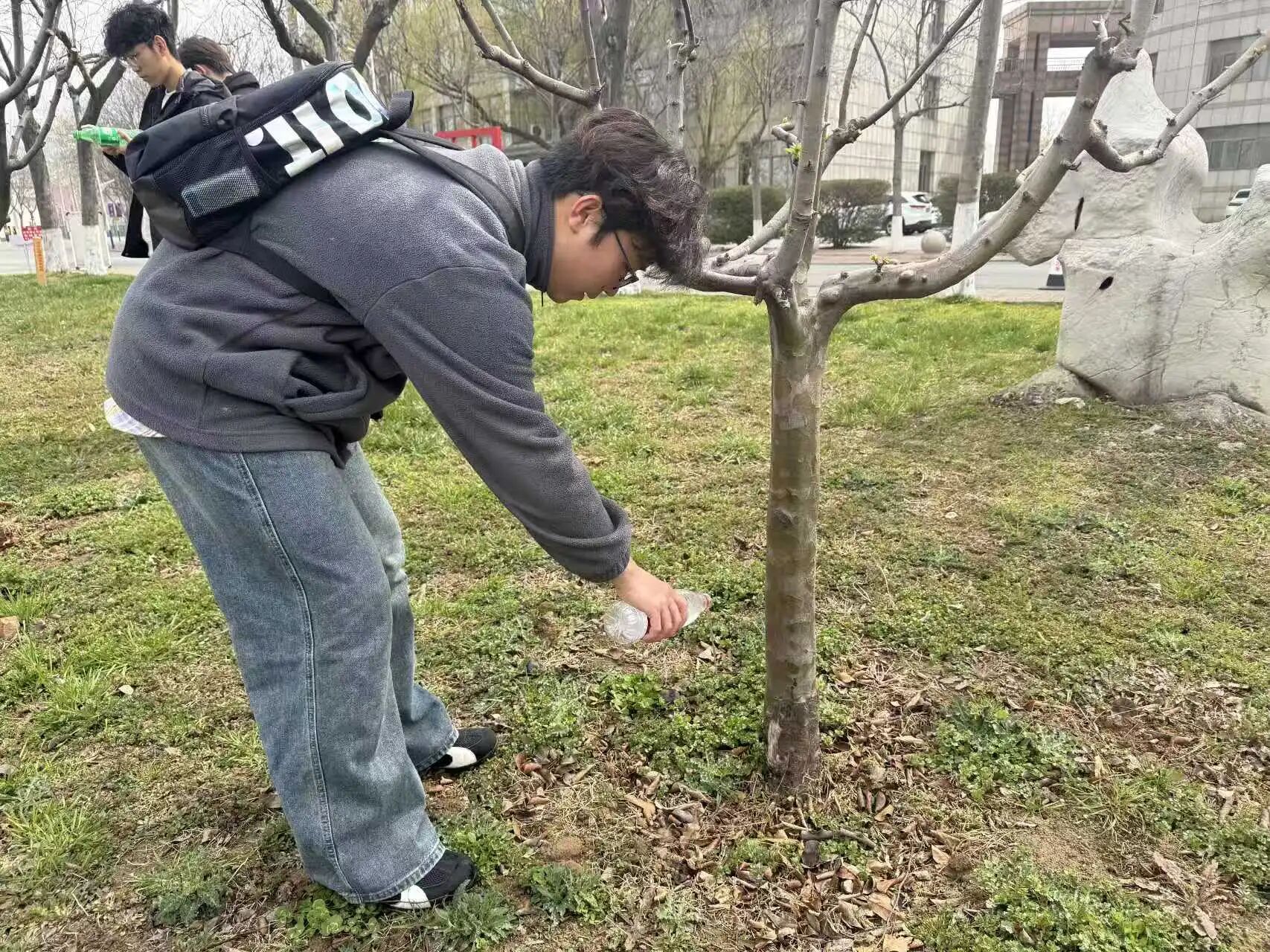 活动当天,志愿者们统一行动、分工协作,按照提前划分好的浇水区域有序开展工作。大家手持浇水工具,细致地为每一株绿植、每一片草木补水滋养,沿着绿化带逐一浇灌,确保水流均匀渗透、植被充分润泽。从路边绿植到花坛草木,志愿者们耐心细致、认真投入,用一泓泓清水唤醒春日生机,用双手呵护绿意生长,让鲜活的色彩在阳光下尽情舒展。完成浇水后,大家简单清理现场、整理工具,高效完成了本次志愿任务。活动现场气氛热烈,志愿者们热情高涨,以实际行动展现了新时代青年学子的良好风貌。